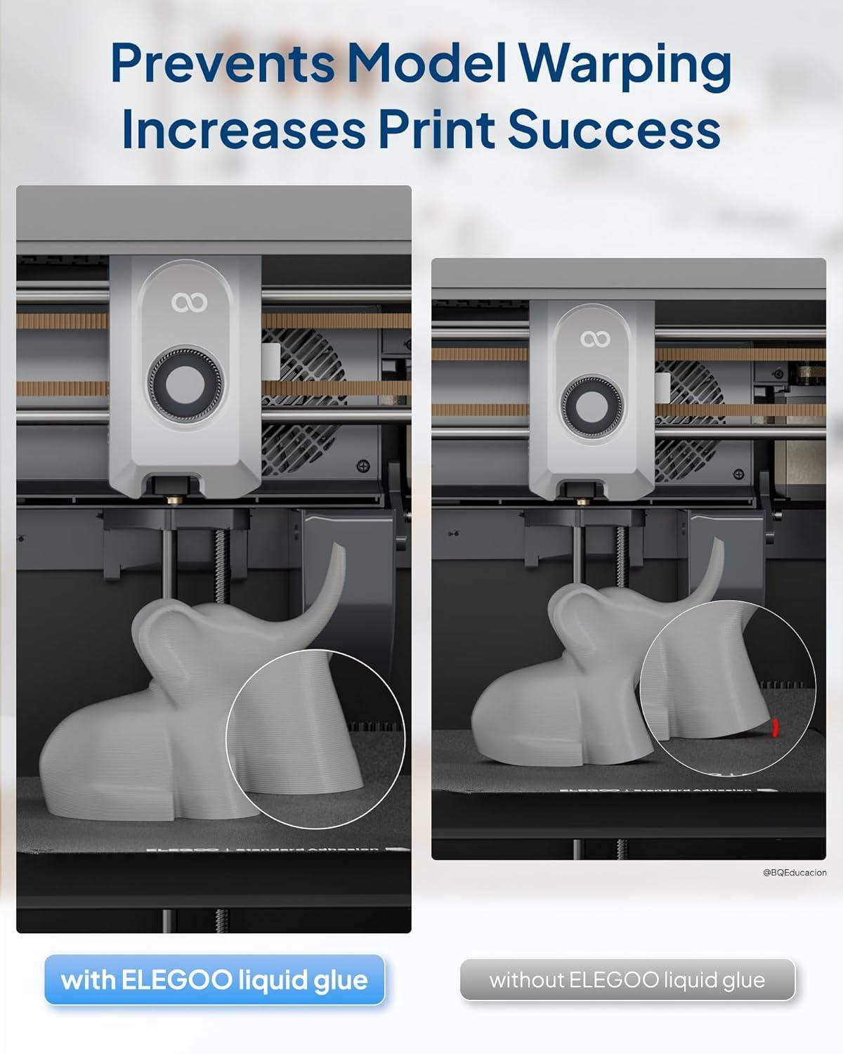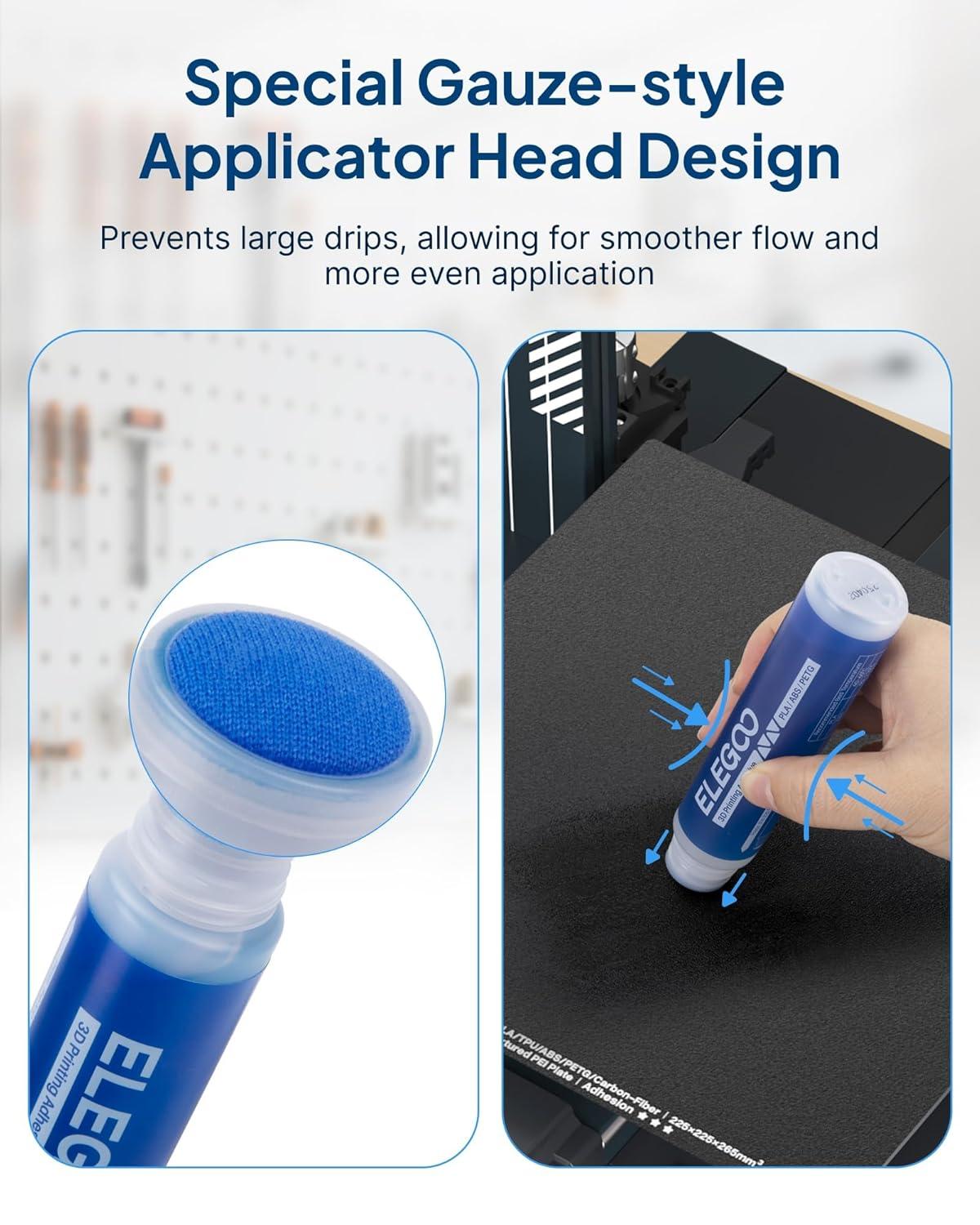 PRECISE & EVEN APPLICATION: Simply squeeze the bottle and press down to spread evenly across the active printing area. Compared to solid glue sticks, ELEGOO adhesive glue allows for smoother and more controlled application, preventing uneven spreading and clumping