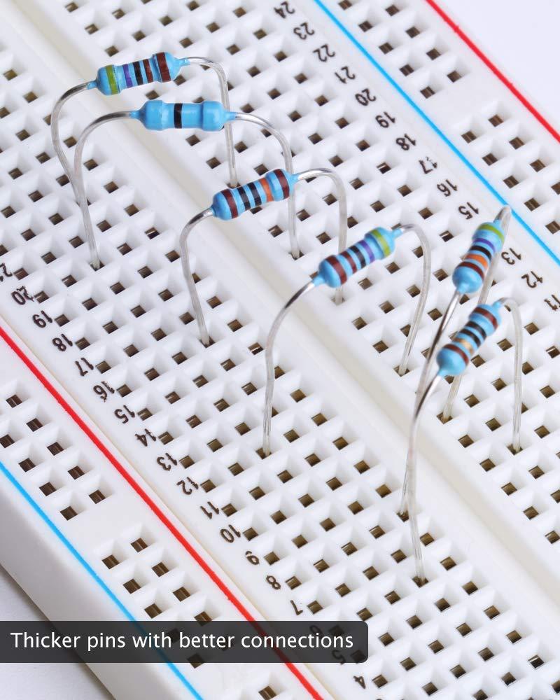 Our resistor has perfect pin (0.022 inches, 0.55mm), #24 lead SWG (Stand Wire Gauge), perfect for breadboard in electronic projects