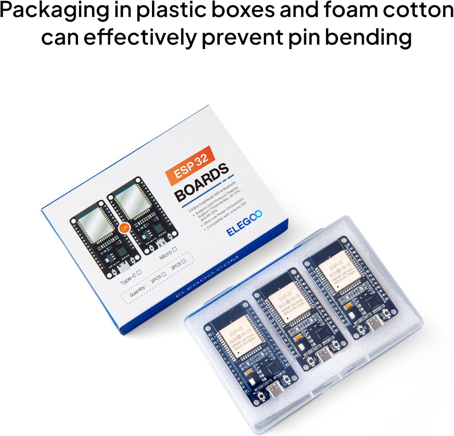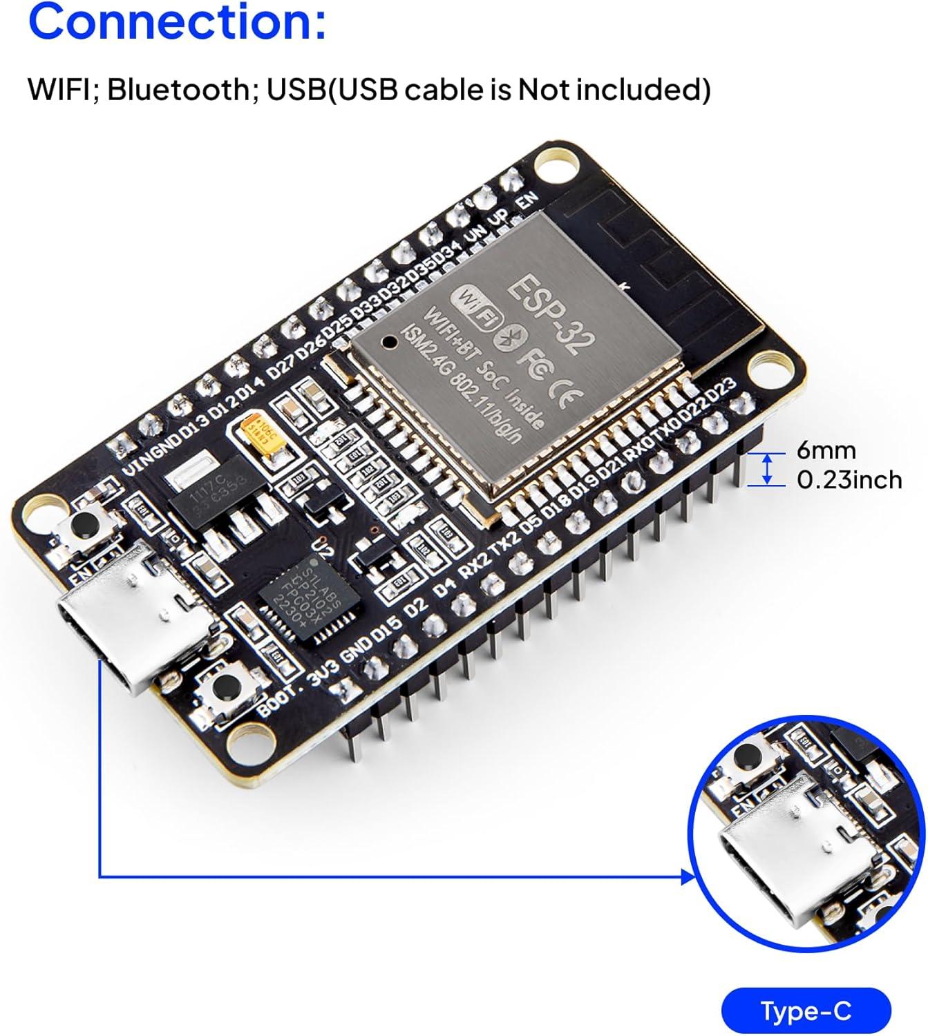 Powerful Processing Capabilities: ELEGOO ESP-32 development board integrates a dual-core 32-bit processor running at up to 240 MHz, providing impressive processing power.