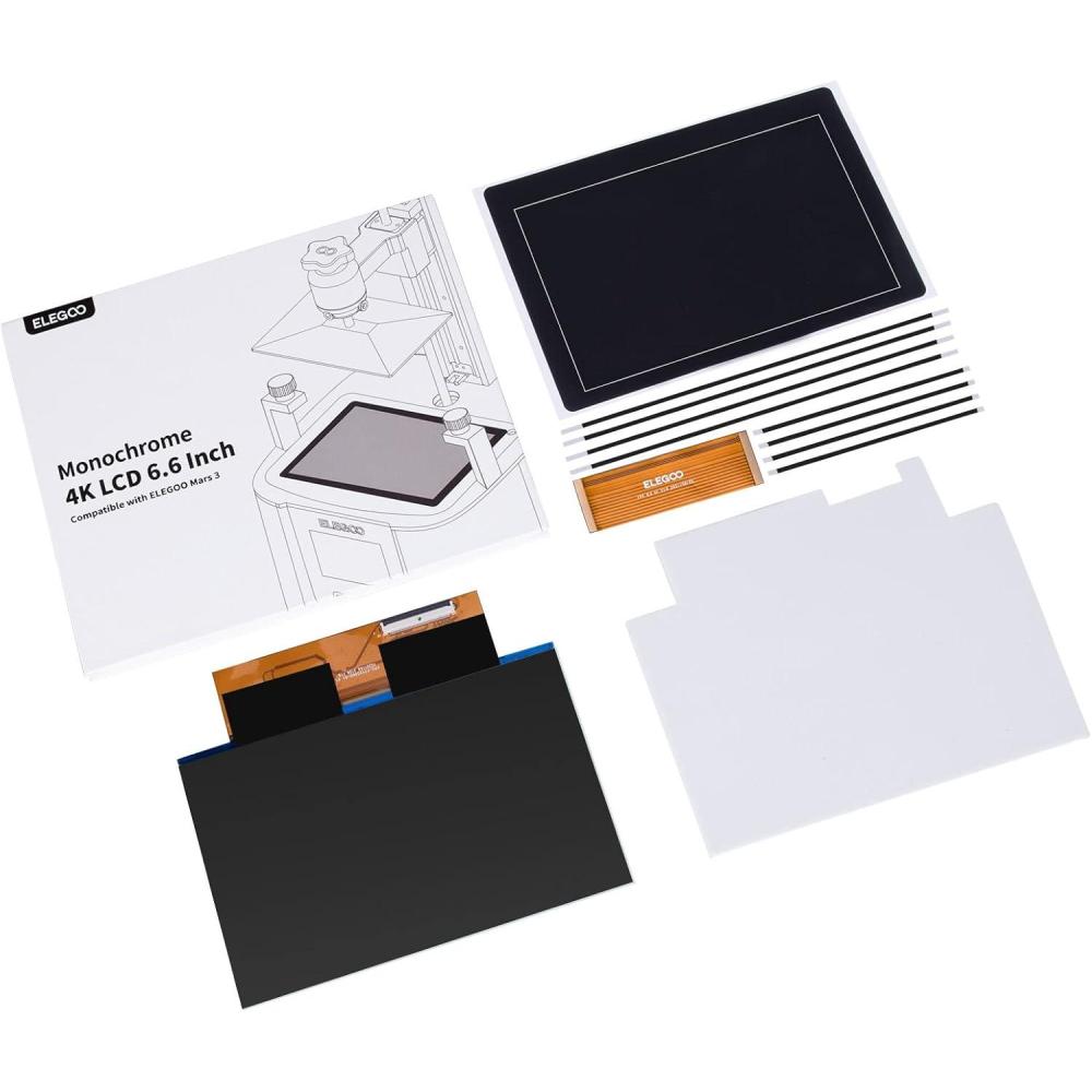 ELEGOO 6.6 Inches 4K Monochrome LCD for Mars 3 Pro LCD Resin 3D Printer, with an HD Resolution of 4098 x 2560 and Replaceable Anti-Scratch Tempered Glass(Mars 3 Pro LCD)