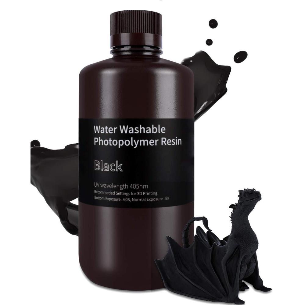 ELEGOO 8K Water Washable 3D Printer Resin, Low Odor, High Precision, 405nm Rapid UV Curing Photopolymer Resin for Mars Saturn Jupiter LCD DLP MSLA 3D Printers, Space Grey 1000g(Black)