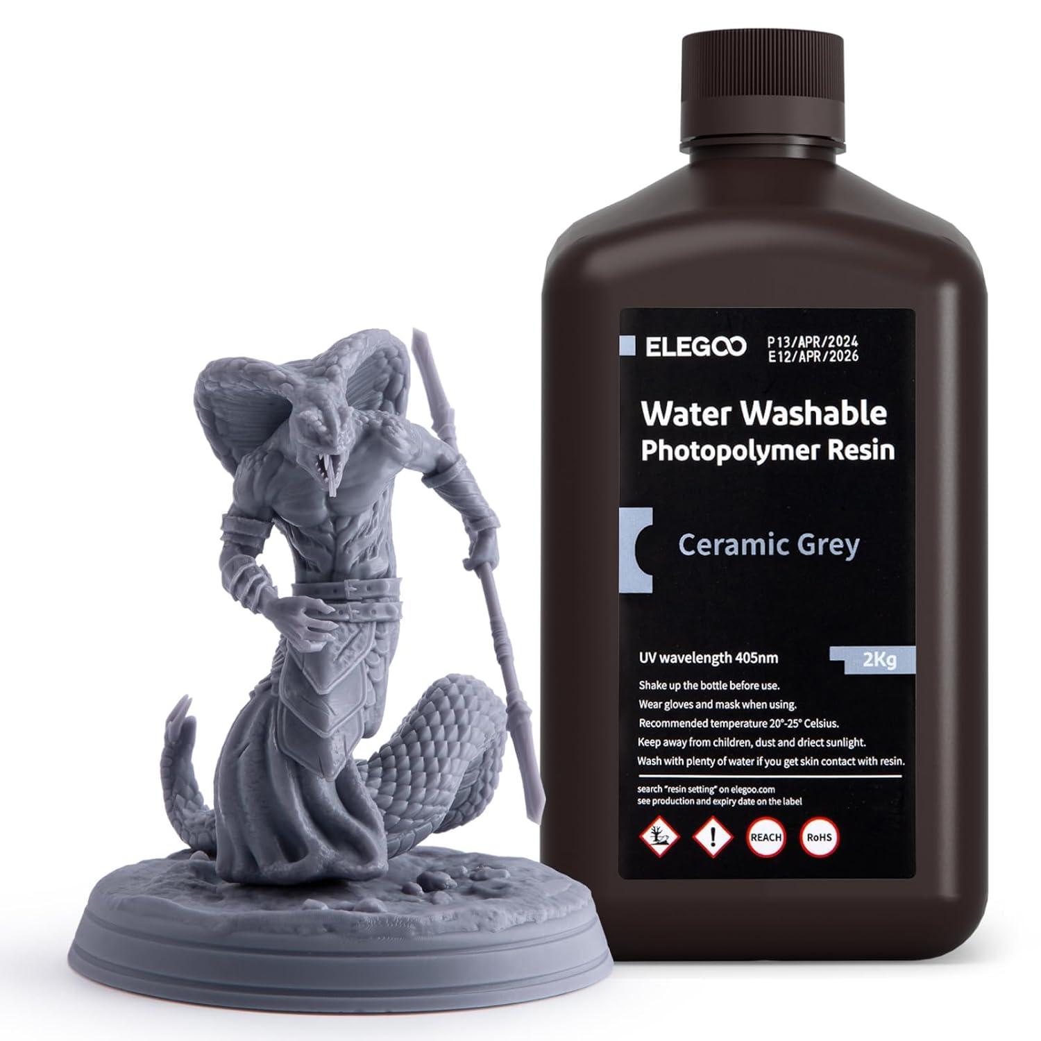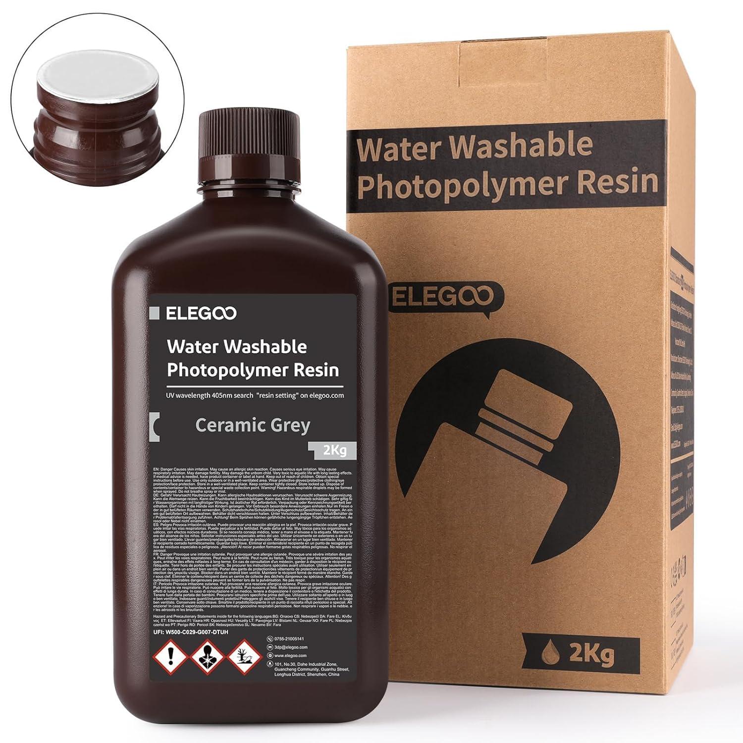 ELEGOO 8K Water Washable 3D Printer Resin, Low Odor, High Precision, 405nm Rapid UV Curing Photopolymer Resin for Mars Saturn Jupiter LCD DLP MSLA 3D Printers, Space Grey 1000g(Ceramic Grey)