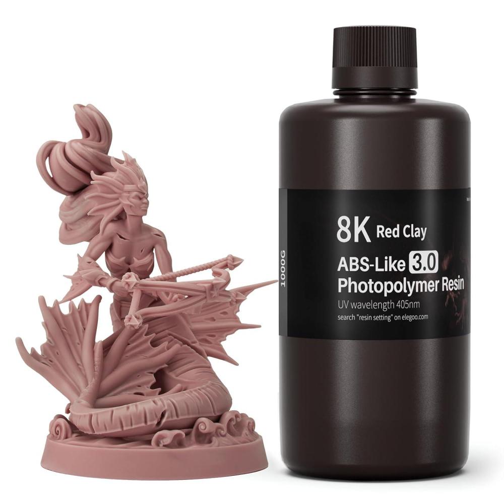 imageELEGOO ABSLike 30 3D Printer Resin Upgraded ABSLike Resin with High Precision Toughness Lower Shrinkage and Viscosity 405nm Fast UVCuring 3D Resin for MSLALCDDLP 3D Printer Beige 1000gRed Clay