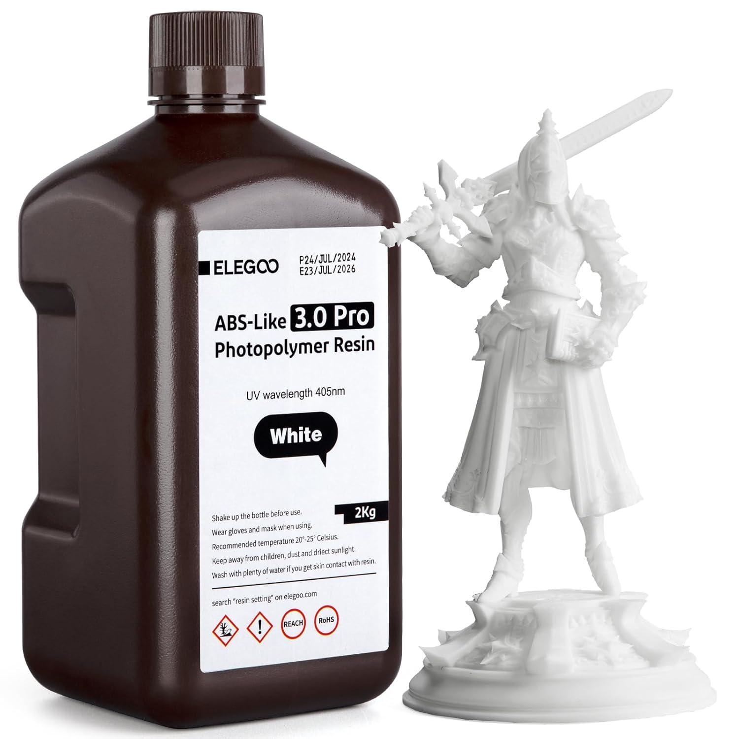 ELEGOO ABS-Like Resin 3.0 Pro, Higher Scratch-Resistance 3D Printing Photopolymer Resin, 405nm UV Resin for MSLA/DLP/LCD Printers Fast Curing High Precision Non-Brittle, Grey 1000g(White)