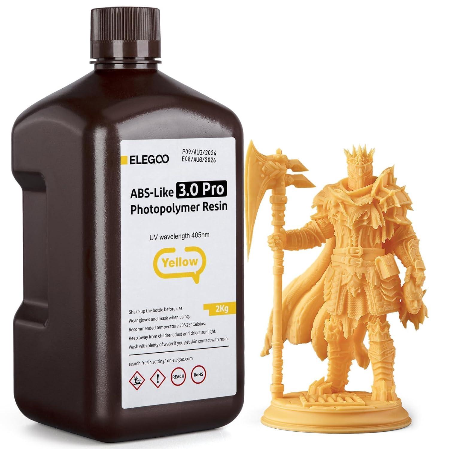 ELEGOO ABS-Like Resin 3.0 Pro, Higher Scratch-Resistance 3D Printing Photopolymer Resin, 405nm UV Resin for MSLA/DLP/LCD Printers Fast Curing High Precision Non-Brittle, Grey 1000g(Yellow)