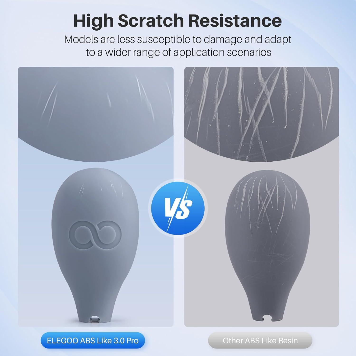 【Higher Scratch-Resistance】 The models printed with ELEGOO Abs-like 3.0 Pro Resin are not easily damaged by the friction and impact of daily use, providing more stable aesthetics.