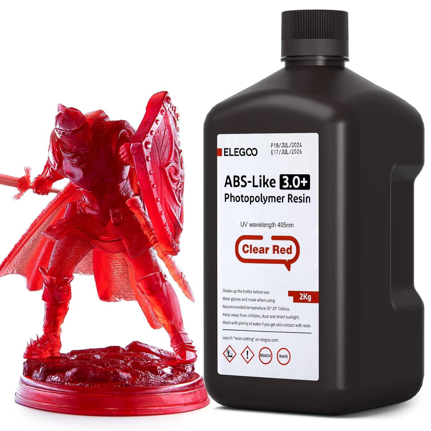 ELEGOO ABS-Like Resin 3.0+, Resin for 3D Printer with Higher Heat-Resistance, Low Viscosity, High Precision, Fast Curing and High Toughness, Compatibale for LCD/DLP/MSLA 3D Printers, Black 1000g(Transparent Red)