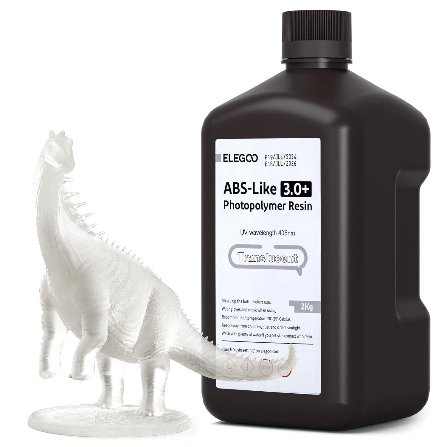 ELEGOO ABS-Like Resin 3.0+, Resin for 3D Printer with Higher Heat-Resistance, Low Viscosity, High Precision, Fast Curing and High Toughness, Compatibale for LCD/DLP/MSLA 3D Printers, Black 1000g(Translucent)