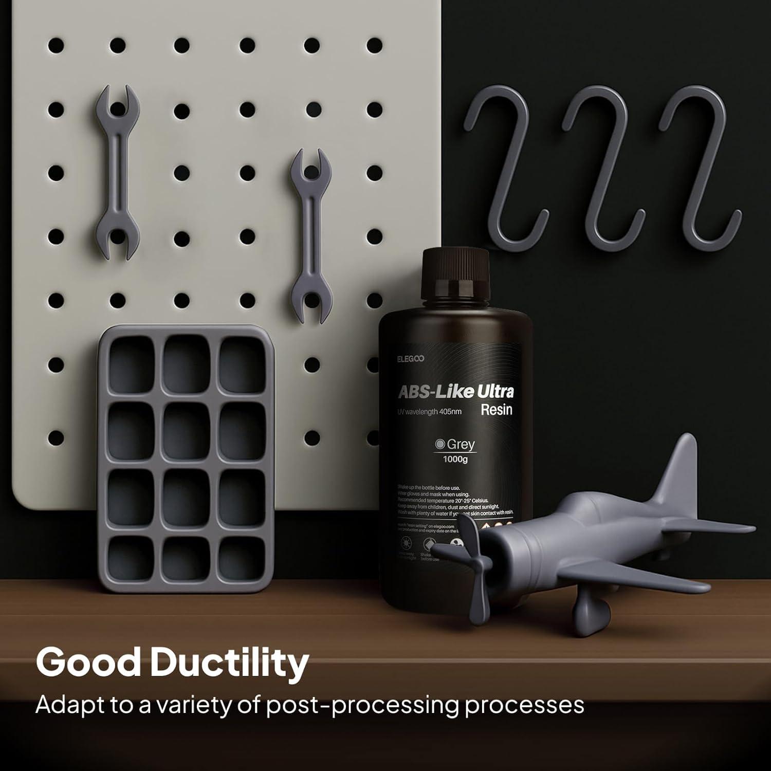 【Flexible and durable】With advanced formula, it is extremely flexible and not easy to break when bent. ELEGOO ABS-Like Ultra Resin can maintain structural integrity even in complex shapes and thin-walled structures.