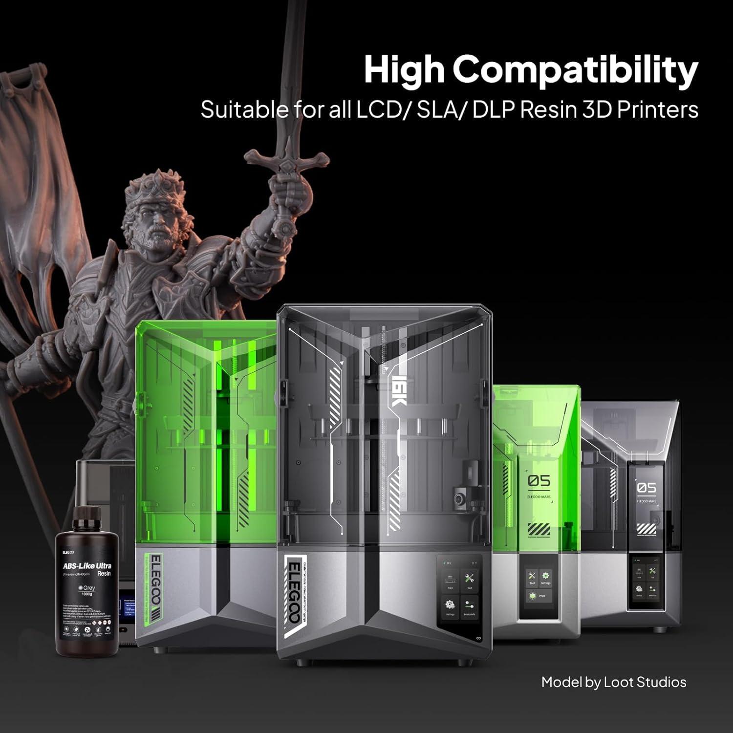imageELEGOO ABSLike Ultra Resin with Extra Strength and Toughness Compatible with MSLADLPLCD Resin 3D Printer Perfect 3D Printer Resin for Tool Application NeonLime 1000gGrey