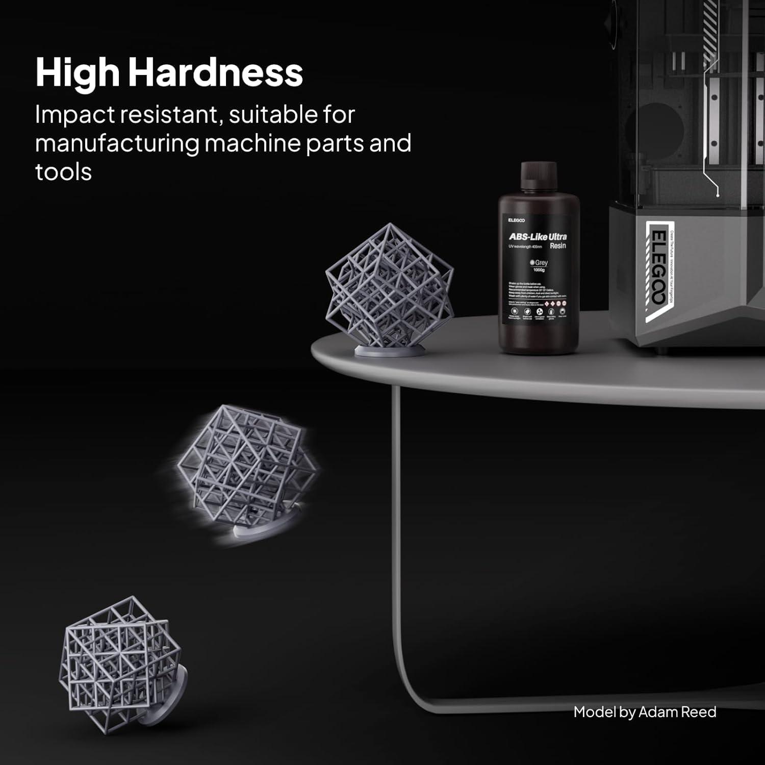 【High hardness and impact resistance】 With high hardness and strong impact resistance, ELEGOO ABS-Like Ultra 3D Printer Resin can maintain shape and performance even in high-intensity use scenarios, and is suitable for manufacturing durable mechanical parts and tools.