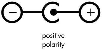 Center or Tip is positive, sleeve is negative. Automatically converts international voltages, up to 1A output.