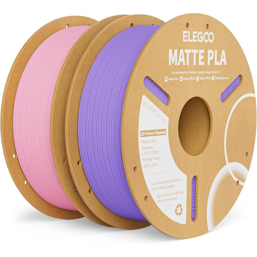 Be the first to review “ELEGOO Matte PLA Filament Matte White 2KG, 1.75mm 3D Printer Filament Dimensional Accuracy +/- 0.02mm, 2pcs 1kg Carboard Spool (2.2lbs) for Most FDM 3D Printers(Lavender Purple & Sakura Pink)”