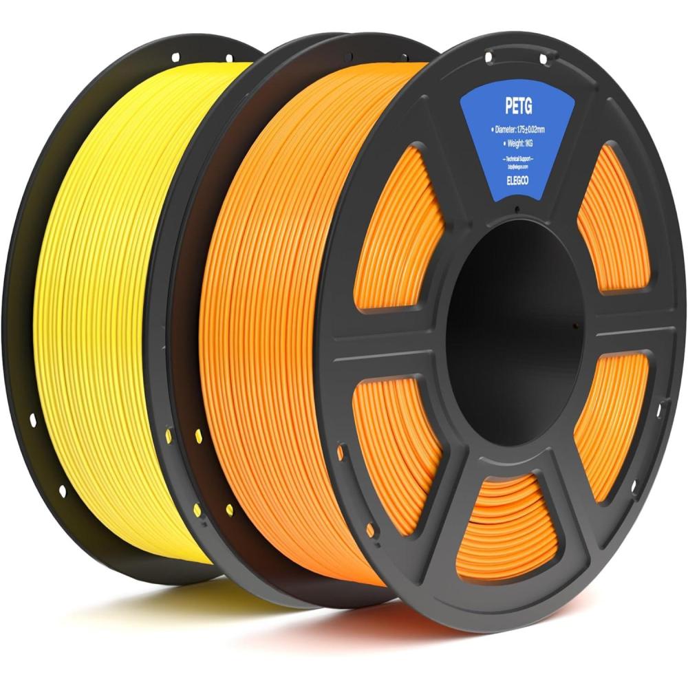 ELEGOO PETG Filament 1.75mm Orange 1KG, 3D Printer Filament Dimensional Accuracy +/- 0.02 mm, 1kg Spool(2.2lbs) Fits for Most FDM 3D Printers(Petg Yellow & Orange)