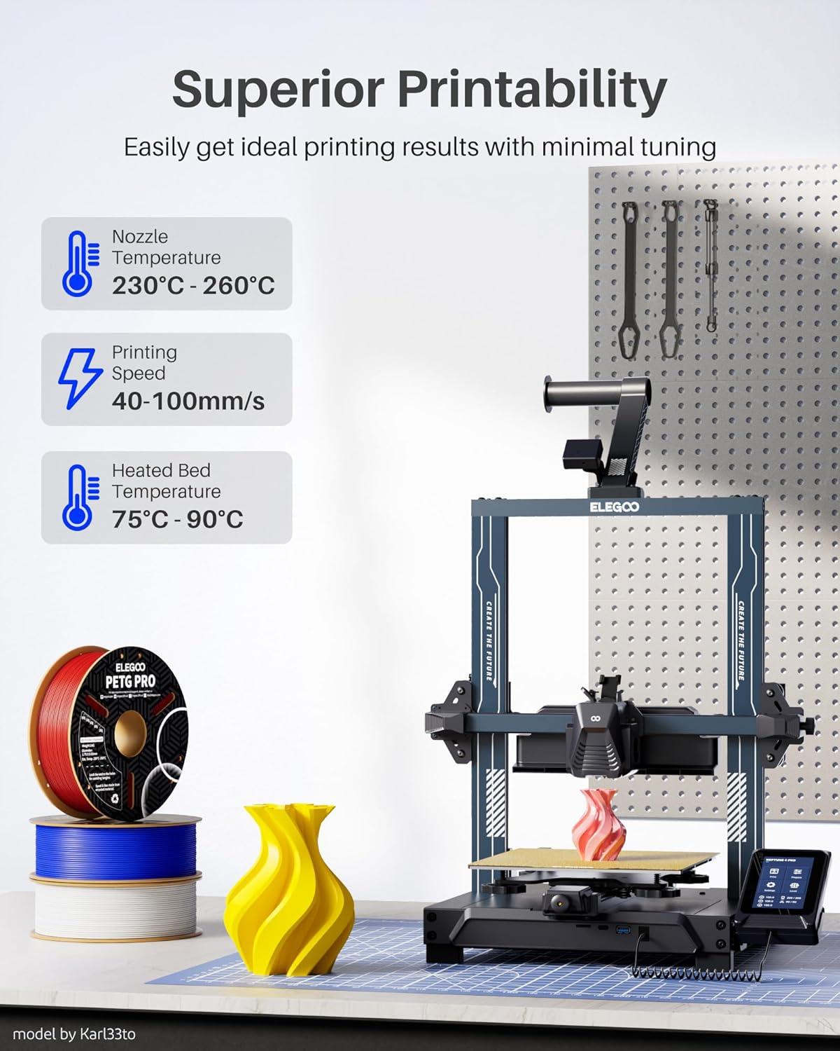 TOUGH AND DURABLE: ELEGOO PETG filament combines the best properties of PLA and ABS, offering excellent durability and high impact resistance. Ideal for printing various mechanical parts, holders, clamps and 3d printer parts