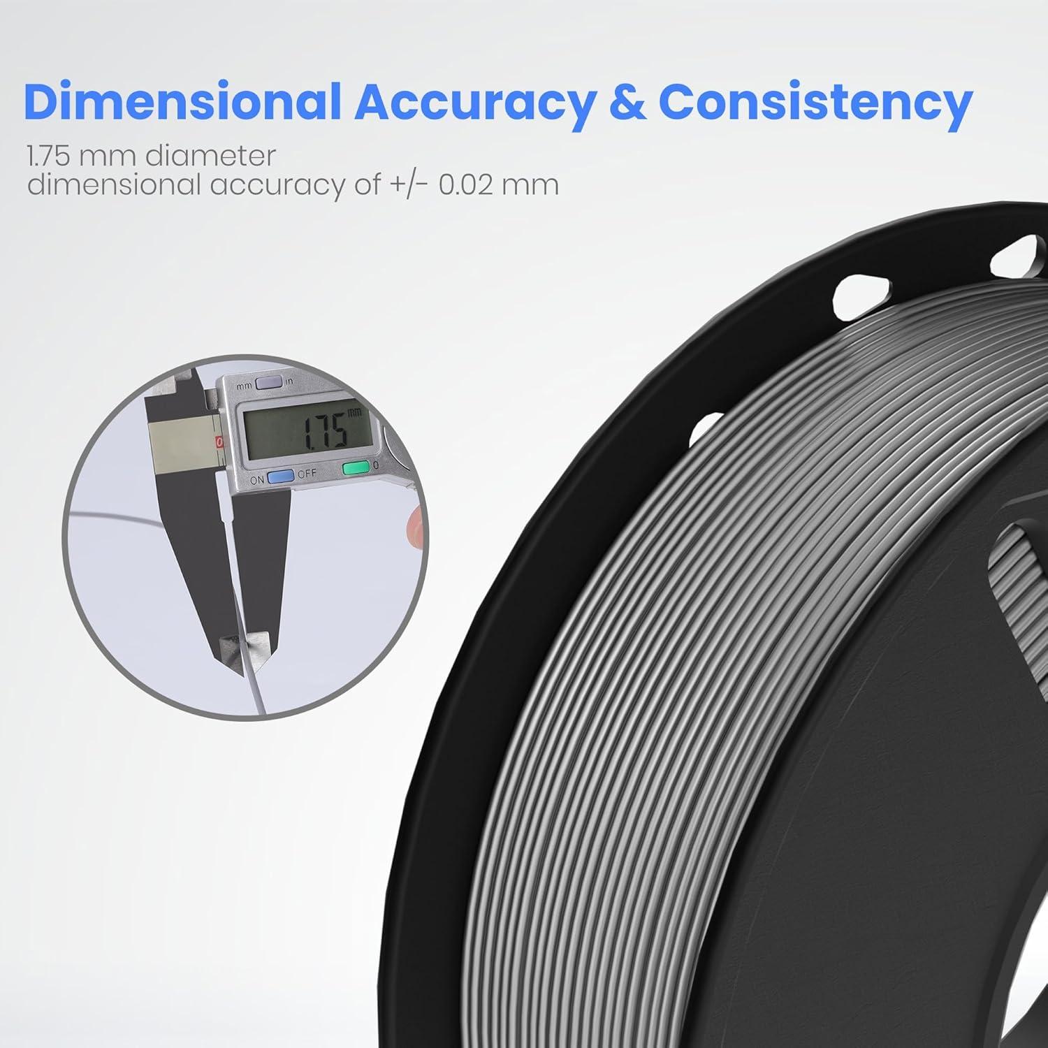 DIMENSIONAL ACCURACY & CONSISTENCY: Strict tolerances guarantee these PLA filaments of 1.75 mm diameter much smoother and more stable printing with the dimensional accuracy of +/- 0.02 mm, 1 kg spool (2.2lbs)