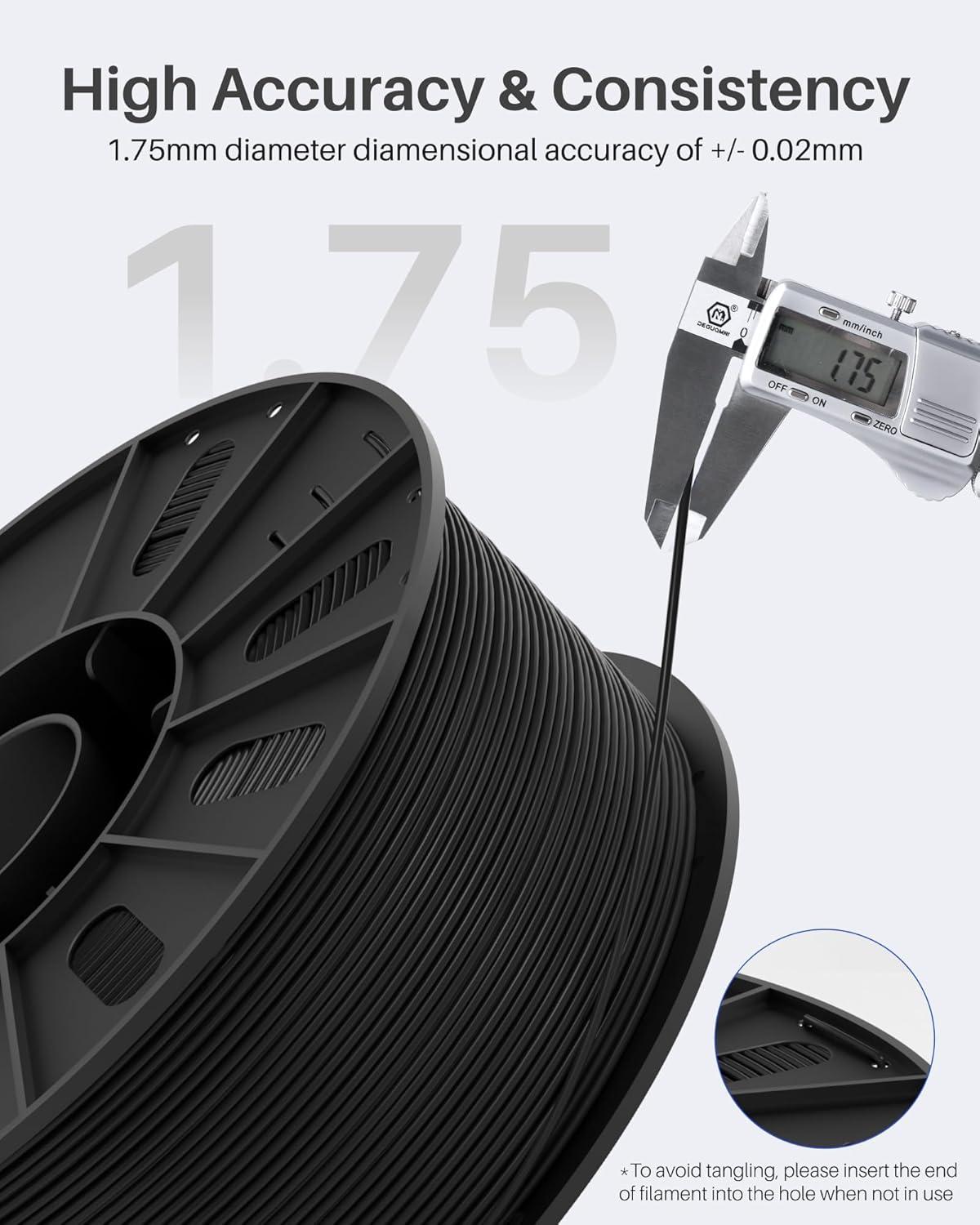 TOP-NOTCH ACCURACY & CONSISTENT: Advanced measurement procedures used during manufacturing, ensure filament is 1.75 mm in diameter, accuracy +/- 0.02 mm, providing consistent and smooth feeding