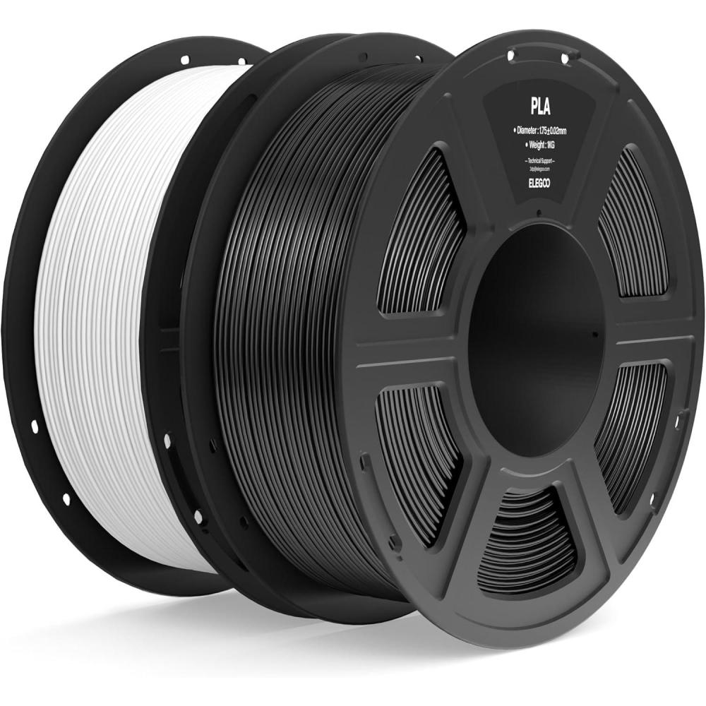 ELEGOO PLA Filament 1.75mm Black 1KG, 3D Printer Filament Dimensional Accuracy +/- 0.02mm, 1kg Spool(2.2lbs) Fit Most FDM 3D Printers(2pcs Black & White)