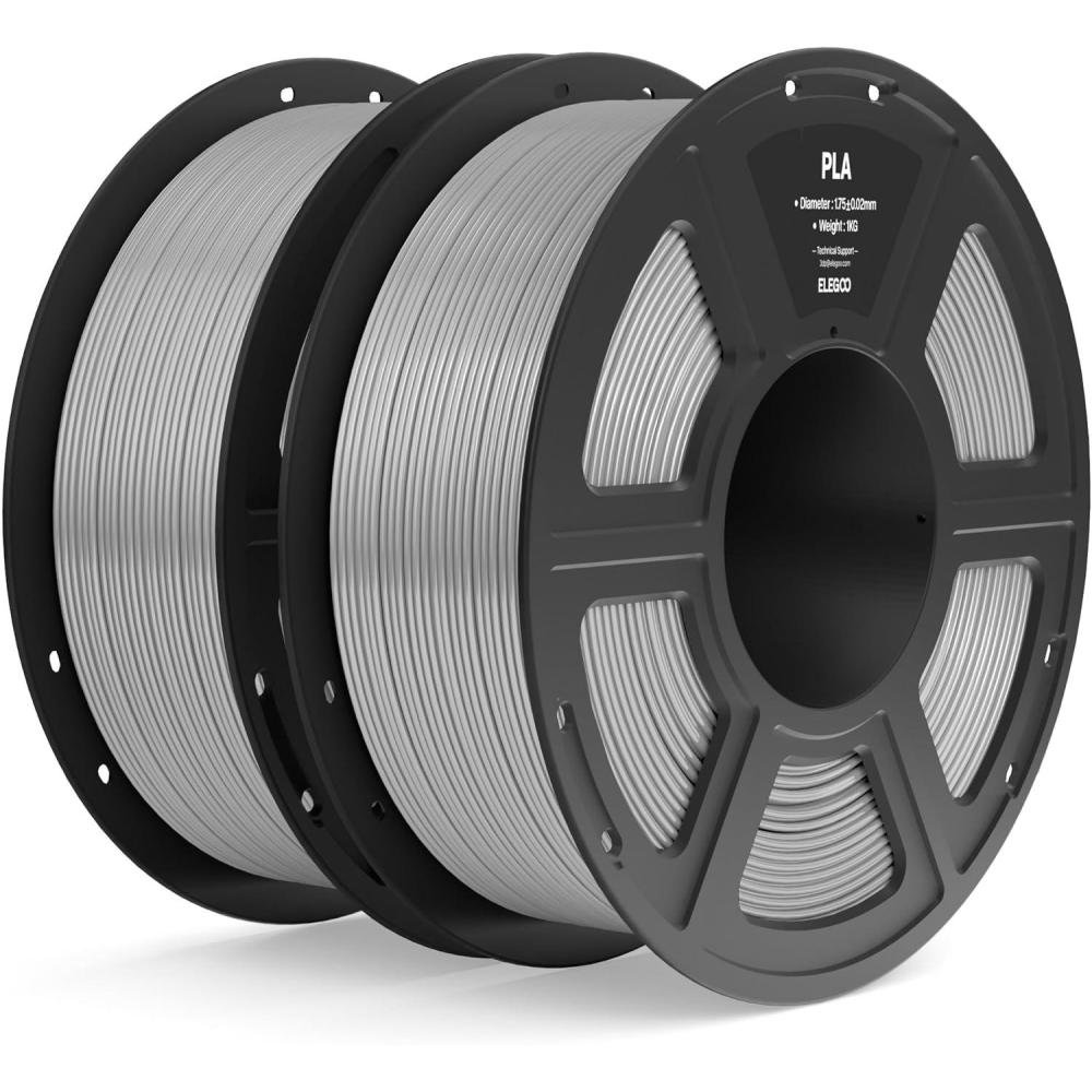 ELEGOO PLA Filament 1.75mm Black 1KG, 3D Printer Filament Dimensional Accuracy +/- 0.02mm, 1kg Spool(2.2lbs) Fit Most FDM 3D Printers(2pcs Gray)