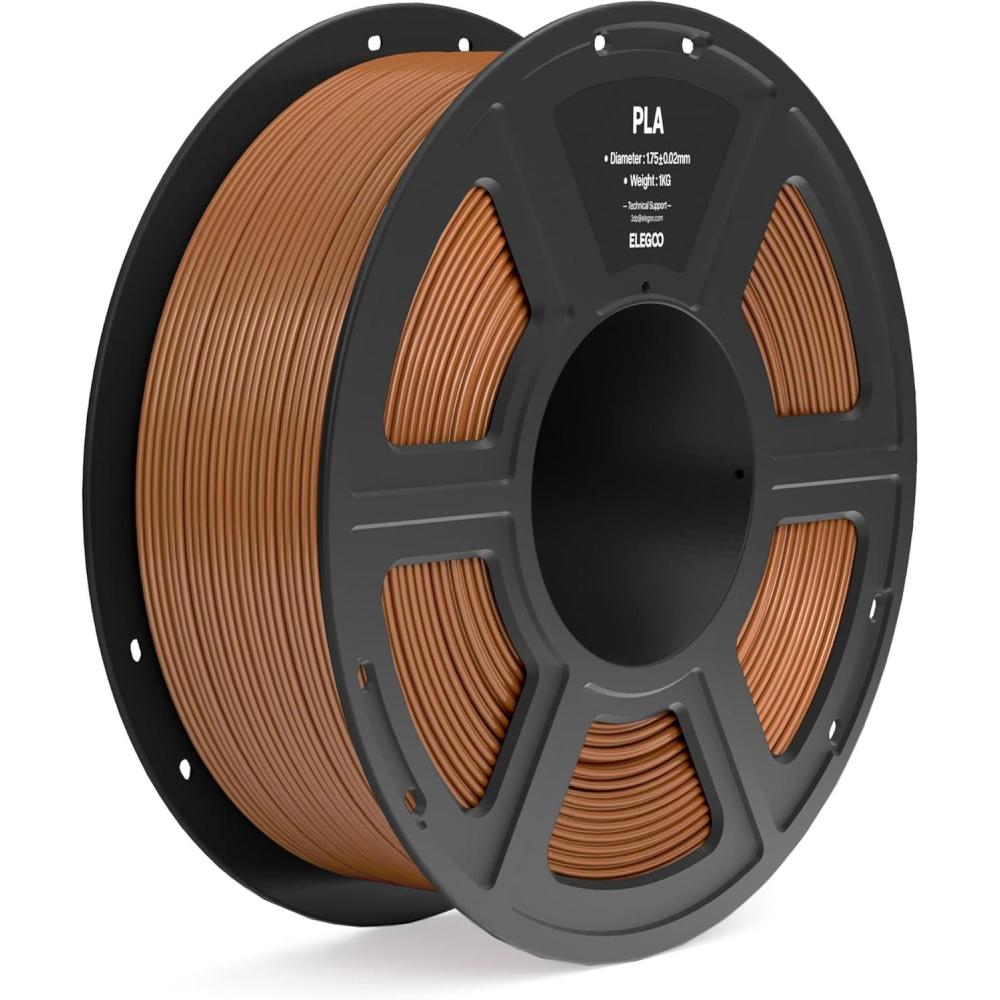 ELEGOO PLA Filament 1.75mm Black 1KG, 3D Printer Filament Dimensional Accuracy +/- 0.02mm, 1kg Spool(2.2lbs) Fit Most FDM 3D Printers(Brown)