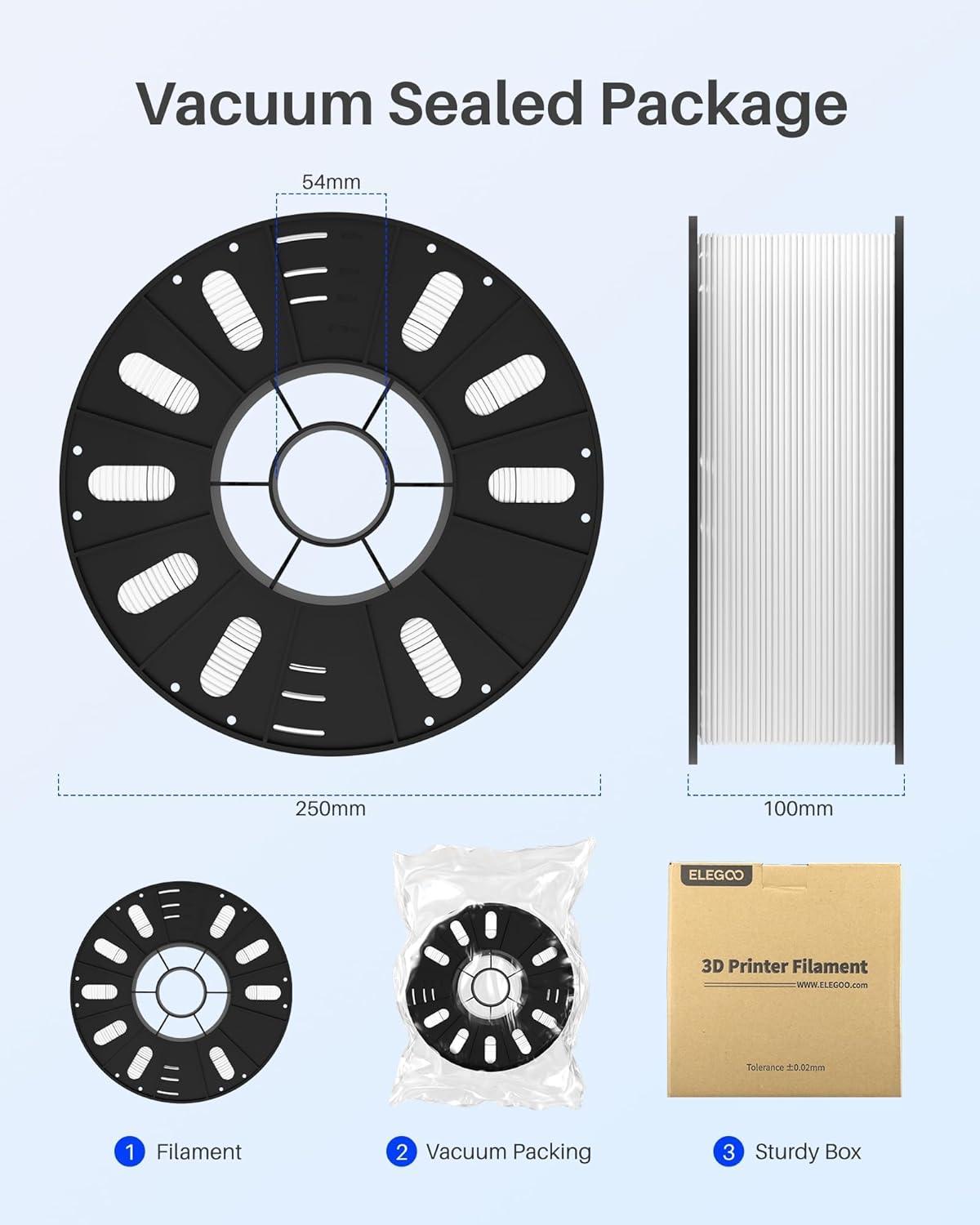 NO CLOGGING & NO BUBBLE: ELEGOO PLA Plus Filament is completely dried before packaging and vacuum sealed well to protect the filament from moisture, no clogging and bubbling problems