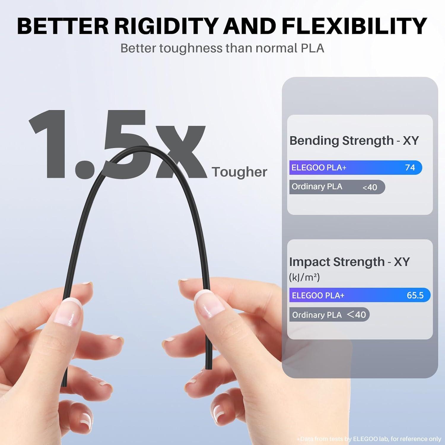 TOU-NOTCH ACCURACY & CONSISTENT: Precise production process guarantee ELEGOO PLA Plus filament of 1.75mm diameter, accuracy of +/- 0.02mm. Strict tolerances and perfect dimensional accuracy ensure smooth and consistent feeding for filaments