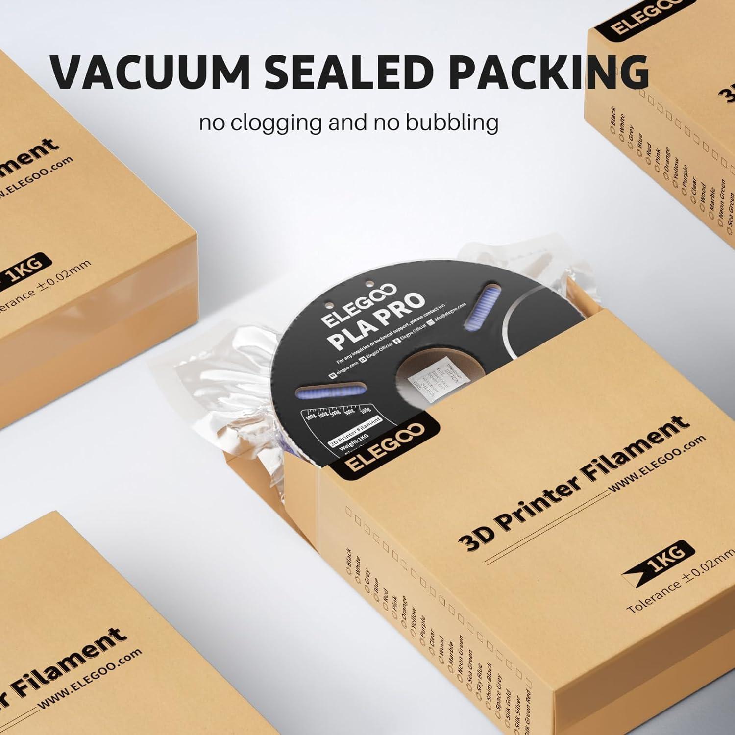 RELIABLE BED ADHESION: ELEGOO PLA PRO is made of top quality pure pla material, prints can adhere firmly to the bed, preventing warping and detachment issues. Enjoy hassle-free 3D printing with a reliable first layer