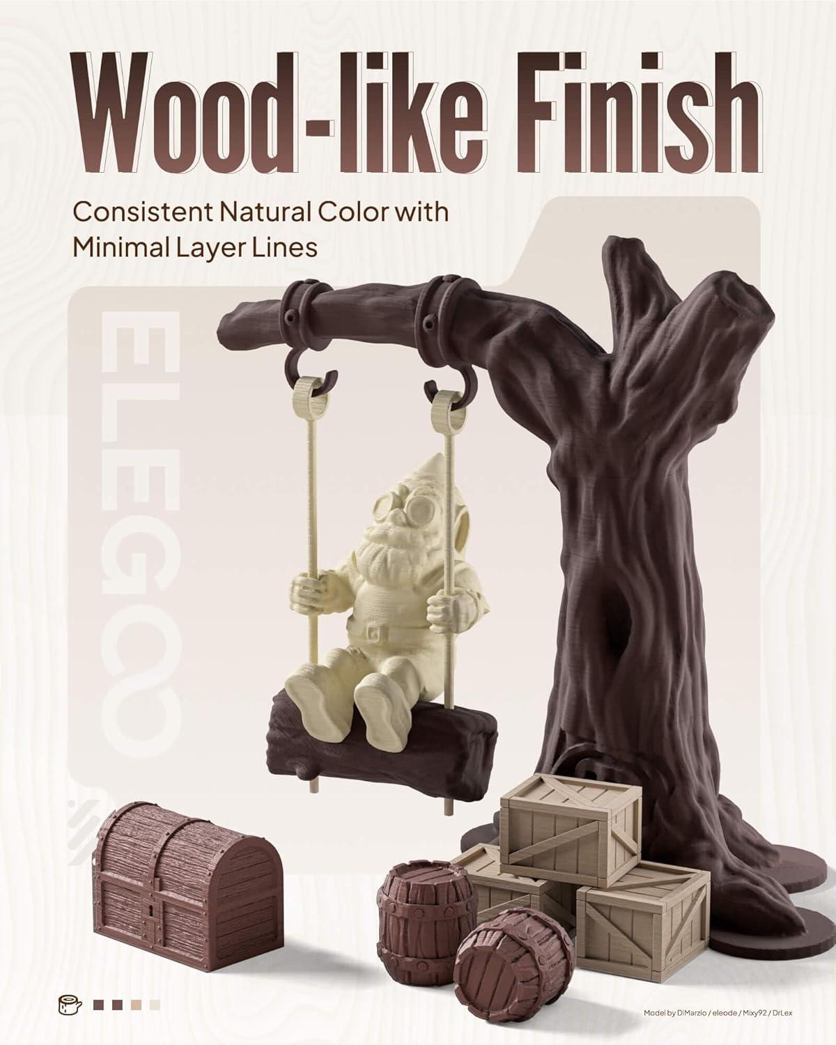 ELEGOO PLA PRO Filament 1.75mm Yellow 1KG, 30-250mm/s Printing Speed Improved Rigidity 3D Printer Filament Dimensional Accuracy +/- 0.02mm, 1kg Spool (2.2lbs)(Pla Oak Wood)
