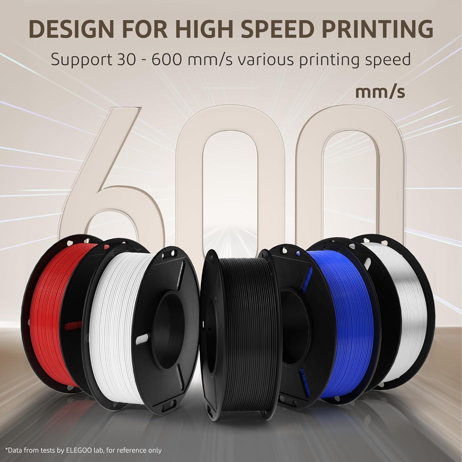 600 MM/S PRINTING SPEED: With enhanced fluidity, ELEGOO RAPID PETG filament melts rapidly and flows smoothly, allowing for up to 600 mm/s fast printing speed. You can complete the projects quickly without compromising on quality