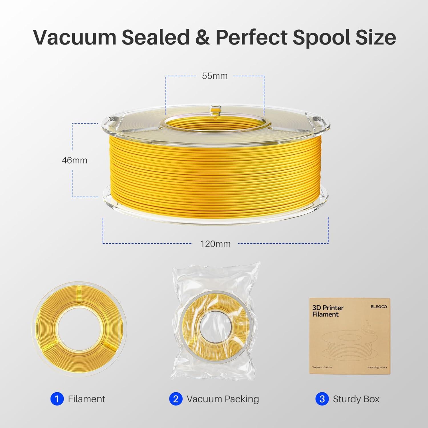 STUNNING SILK COLORS: ELEGOO silk pla is designed to give your prints a beautiful and glossy finish. The unique shiny colors provides a luxurious and eye-catching look to your creations and will make them stand out