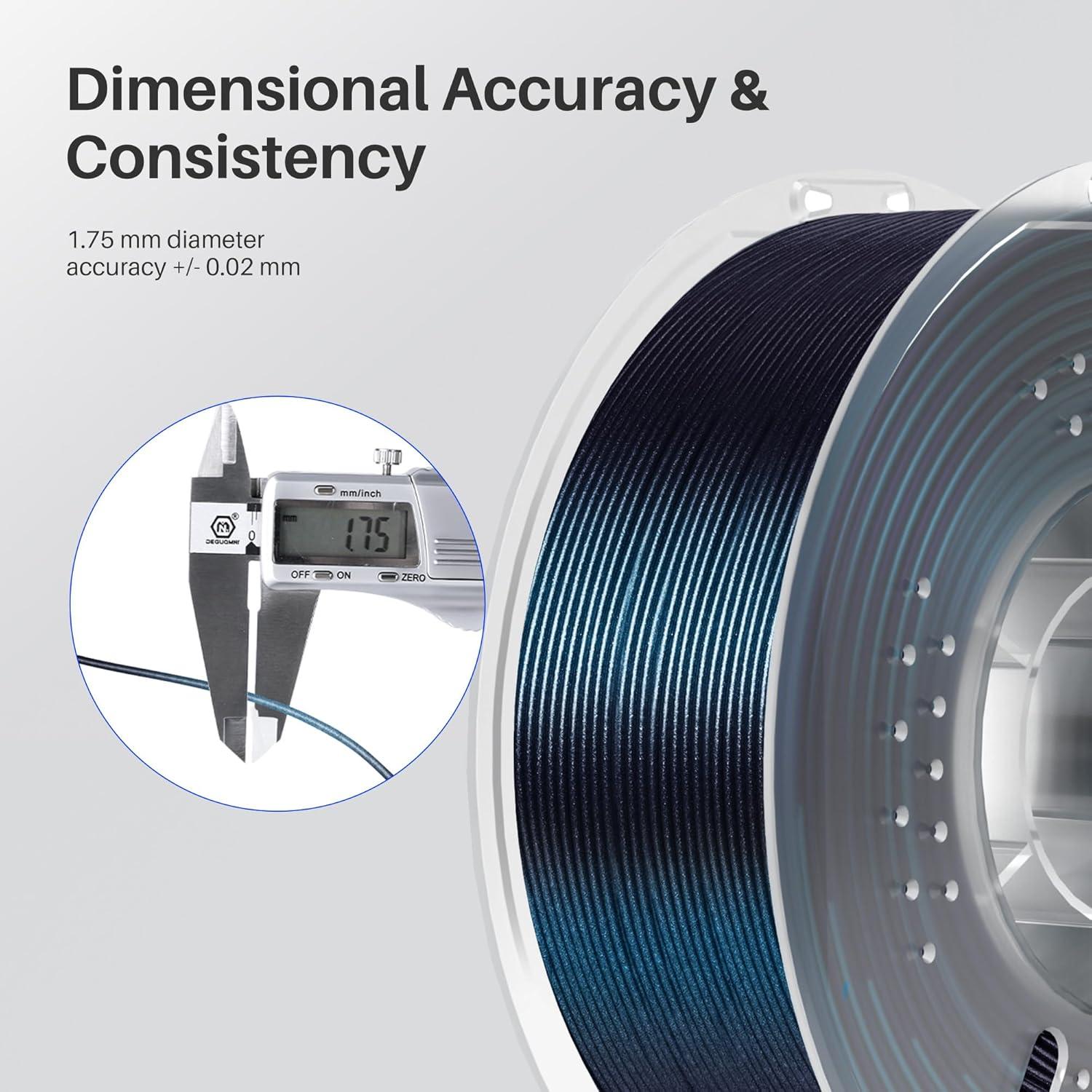 SMOOTH & RELIABLE PRINTING: The 3D printer filament has a standard 1.75 mm diameter with strict control for size accuracy (±0.02 mm), which means it feeds evenly into your printer and helps avoid jams or uneven layers