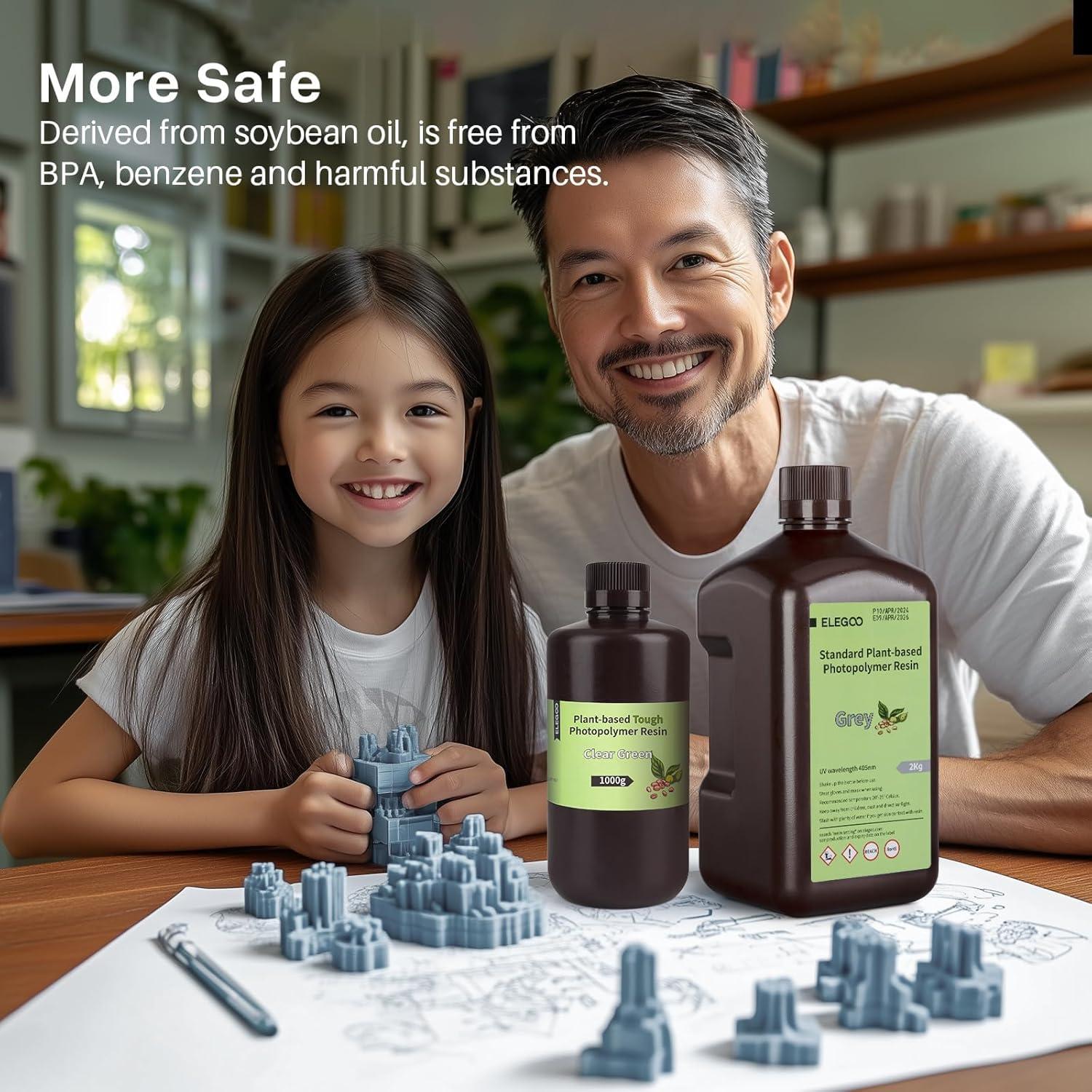 【Safe and no irriation】ELEGOO Plant-based resin is made mainly from soybean yet still delivers amazing prints, which is Non-BPA, has an ultra-low odor, and barely any pungent fumes, offering you a great and refreshing resin 3D printing experience.