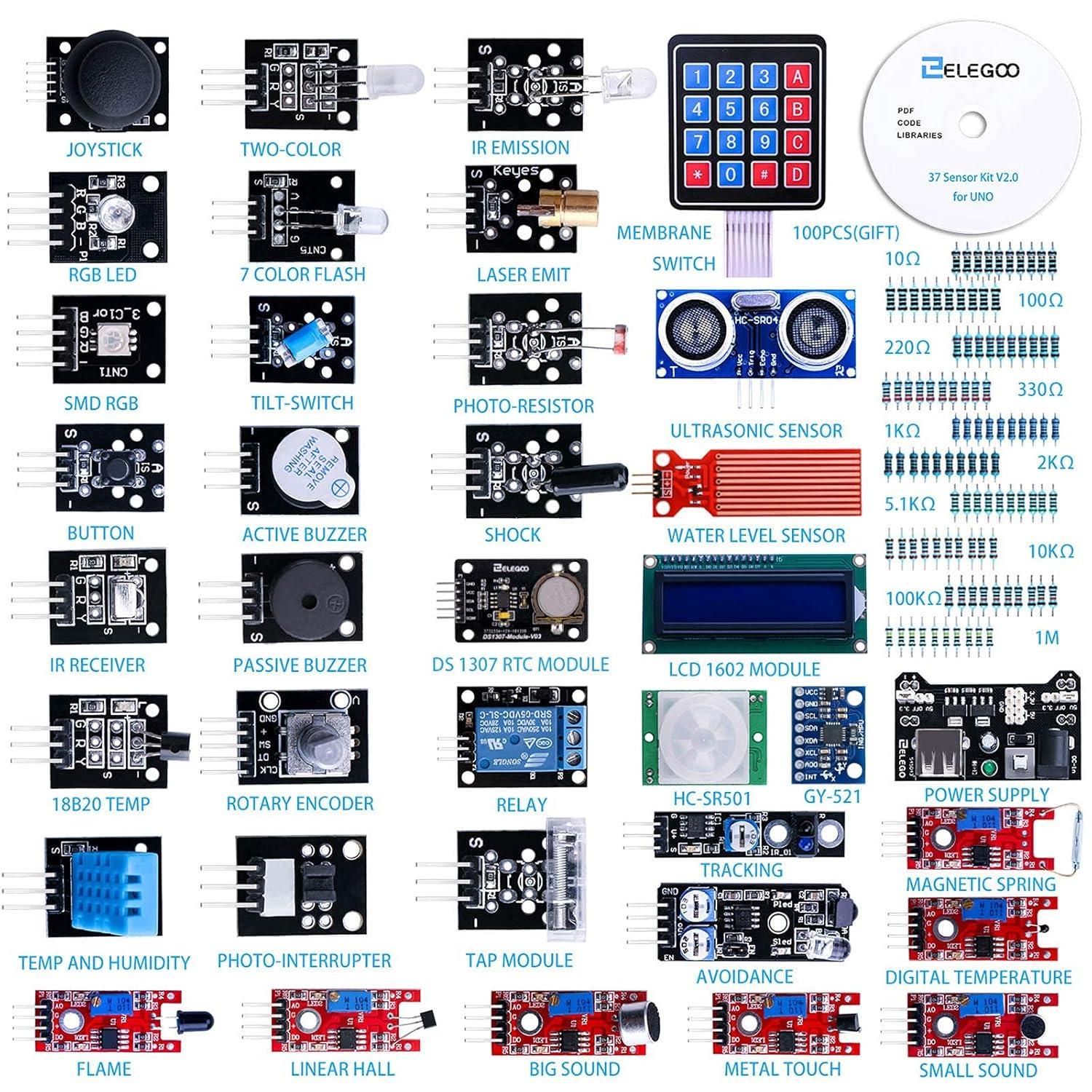 ELEGOO Upgraded 37 in 1 Sensor Modules Kit with Tutorial Compatible with Arduino IDE UNO R3 MEGA2560 Nano