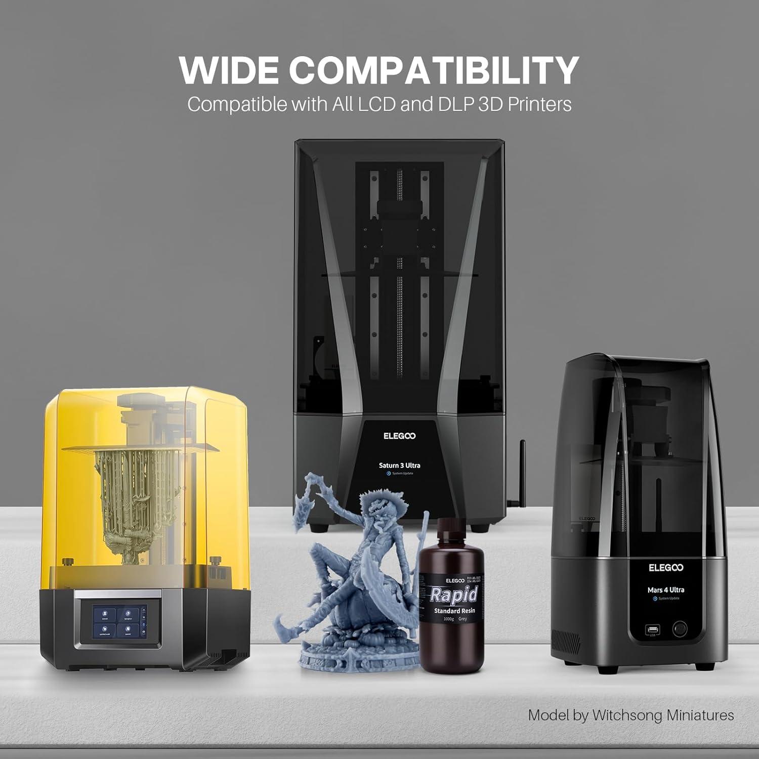 【Wide Compatibility】 Compatible with most LCD/DLP/MSLA resin printers with 405nm wavelength light source, and better with ELEGOO Resin 3D printer. This 3D resin takes both price and performance into consideration and can meet most printing needs