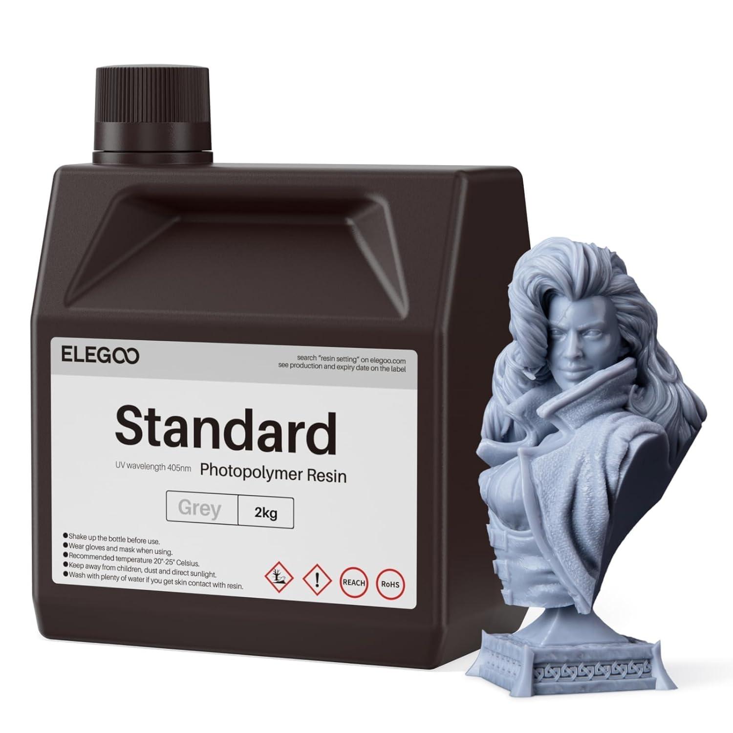 imageELEGOO Upgraded Standard Resin 20 Resin for 3D Printer with High Precision Low Odor Higher Toughness 405nm UV Curing Photopolymer Resin for Mars Saturn MSLA DLP LCD 3D Printing Orchid 1000gGrey