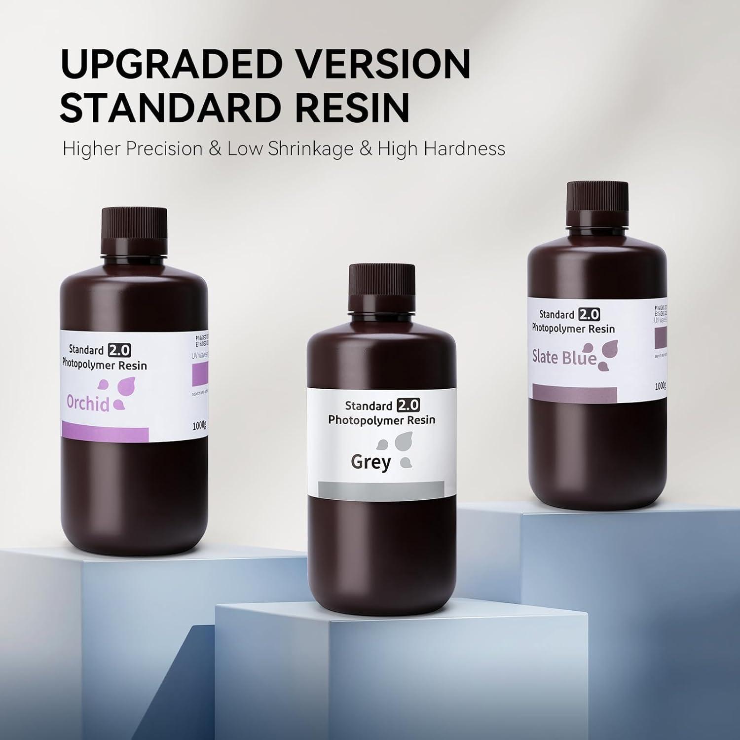 【Upgraded Toughness】 After Cured, the Standard Resin 2.0 has higher toughness and hardness, the printed model is not easy to break, and has impact resistance