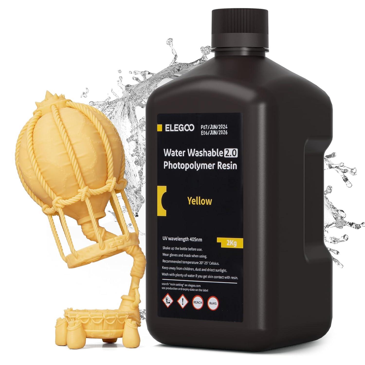 ELEGOO Water Washable 3D Printer Resin 2.0, 405nm UV-Curing 3D Resin with Lower Viscosity, Higher Toughness, Compatible with Saturn Mars Jupiter MSLA DLP LCD 3D Printers, Beige 2000g(Yellow)