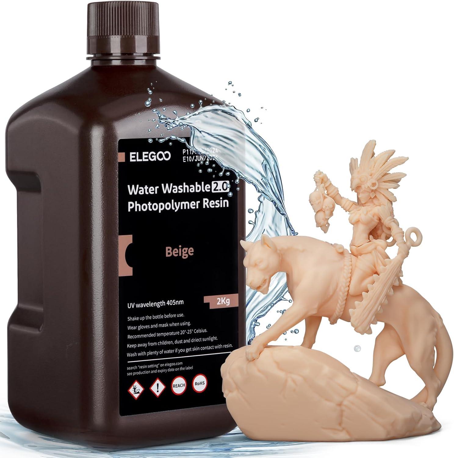 ELEGOO Water Washable 3D Printer Resin 2.0, Fast Curing Photopolymer Resin for Mars Saturn Jupiter MSLA DLP LCD 3D Printing, 385-405nm UV Curing 3D Printing Liquid, Beige 2000g(Beige)