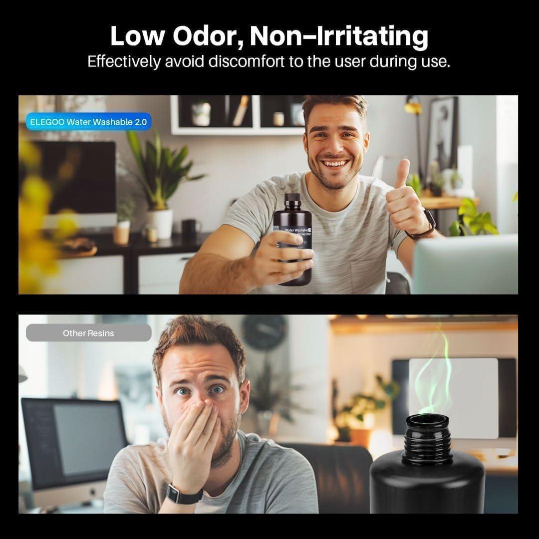 【Excellent Print Quality】 ELEGOO Water washable resin delivers exceptional print quality and produces prints with smooth surfaces, fine details, and sharp edges resulting in professional looking results every time.