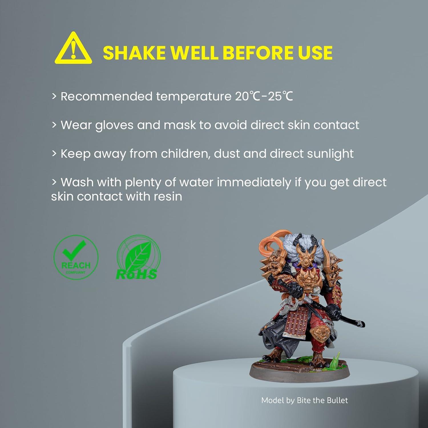 【Fast Curing and Great Stability】ELEGOO 405nm Rapid Resin was designed to significantly reduce printing time with its excellent fluidity. Meanwhile its great stability and proper hardness guarantee a worry-free printing experience and successful printing.