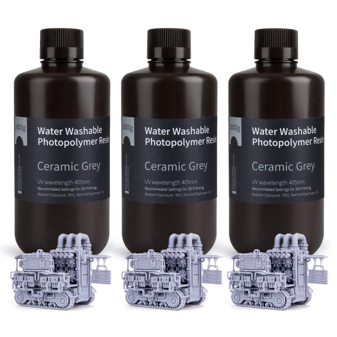 ELEGOO Water Washable 3D Printer Resin LCD UV-Curing Resin 405nm Standard Photopolymer Resin for Mars Saturn Jupiter MSLA DLP LCD 3D Printing,3000Gram Ceramic Grey(Ceramic Grey)