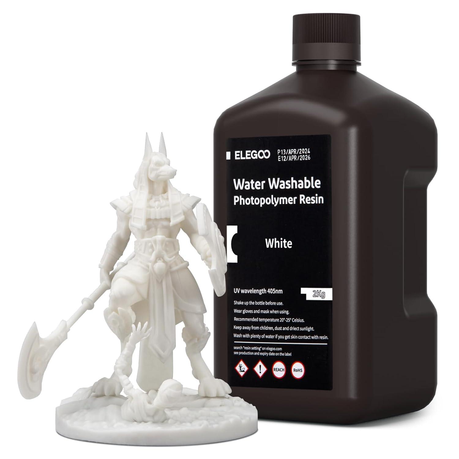 ELEGOO Water Washable 3D Printer Resin, Rapid Precise Printing Resin 405nm Curing Resin for LCD 3D Printer, Grey 1000g(White)